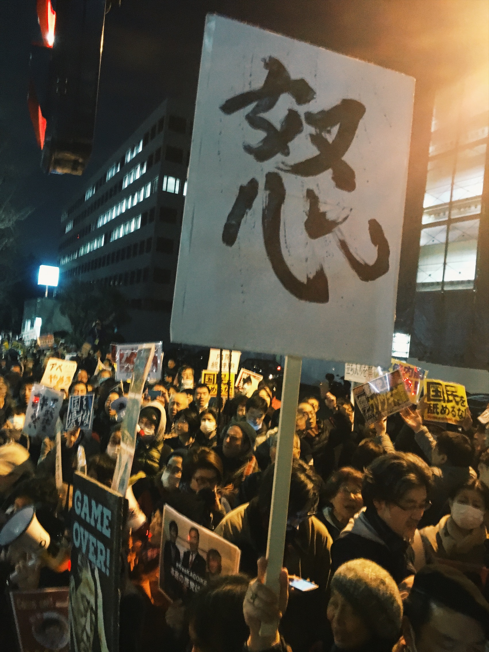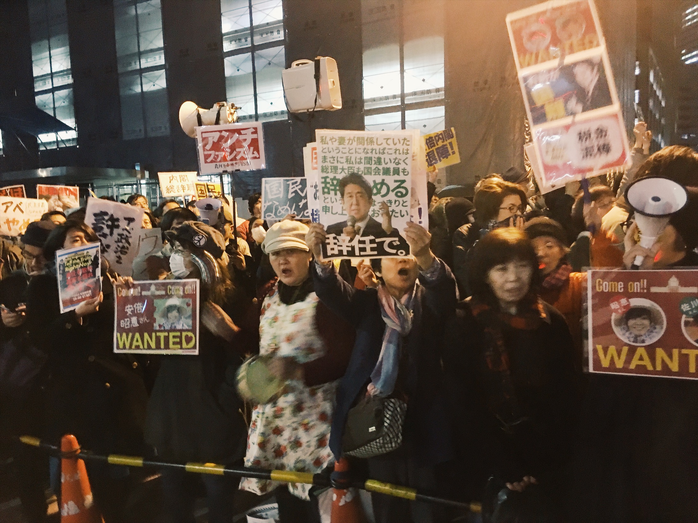 「森友学園」への国有地売却を巡る決裁文書の改ざん問題で12日、官邸前に市民が押し寄せて、安倍内閣の総辞職を求めた。