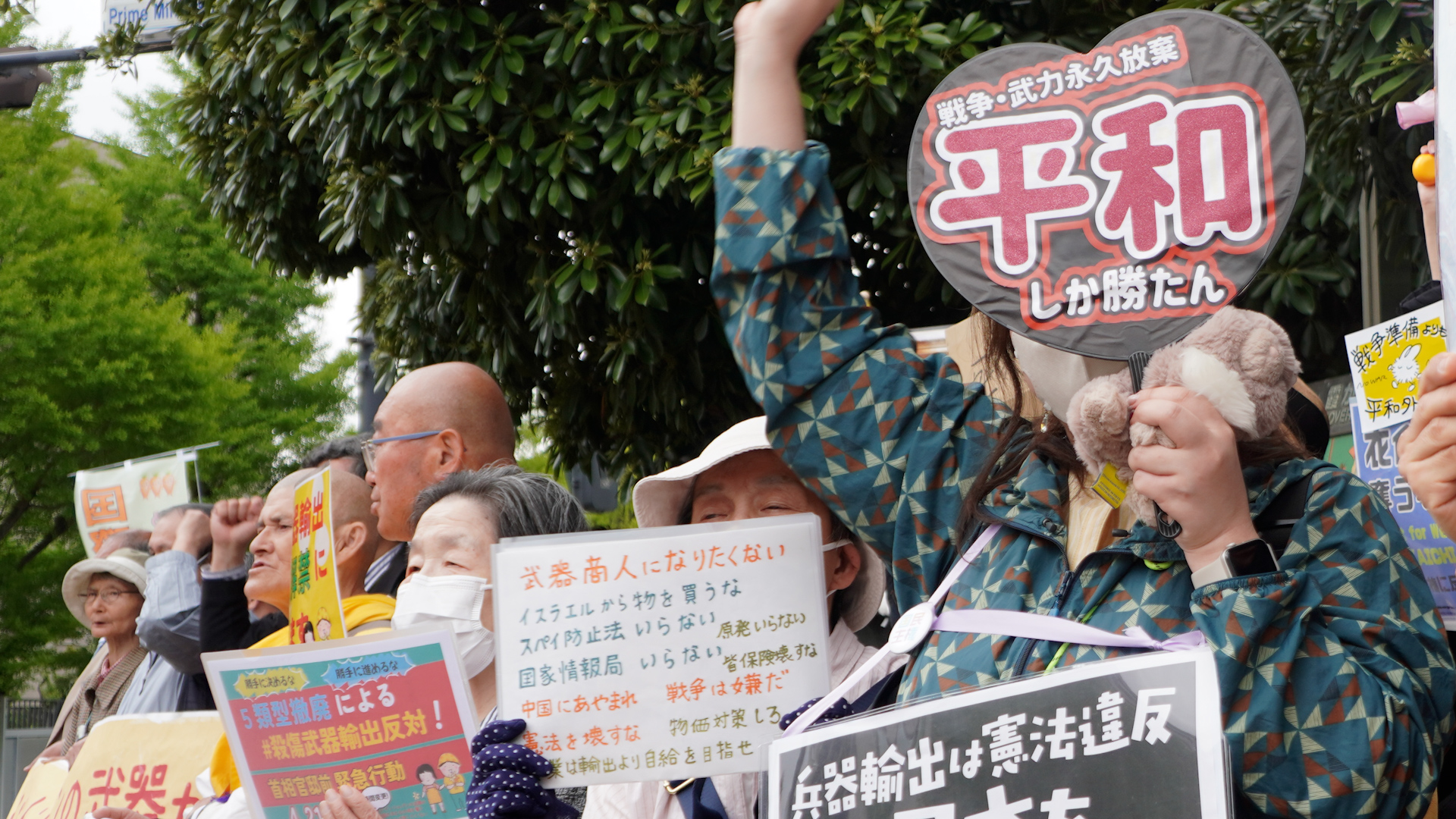 日本政府は21日午前、閣議と国家安全保障会議を開き、防衛装備移転三原則と運用指針を改定し、殺傷能力の武器輸出の解禁を決定した。戦後80年間続いてきた日本の平和主義の大きな方針転換となる。同時刻、首相官邸の前には、100人ほどの市民が駆けつけ、「武器輸出反対!」「勝手に決めるな!」などと抗議の声を上げた。