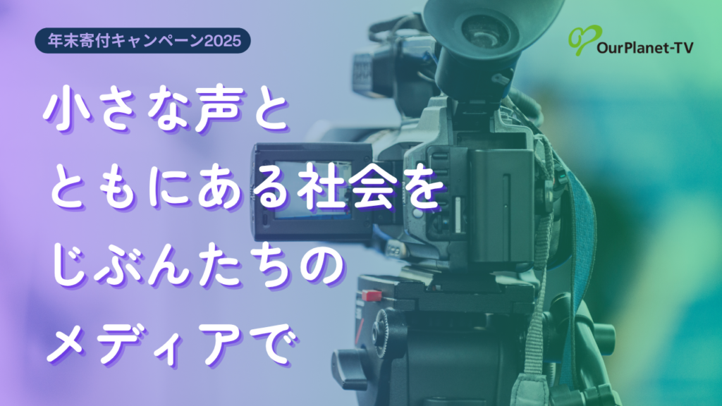 差別や排外主義が広がる中、情報の正確性よりも「人々の関心」がもてはやされ、注目を奪い合うようなメディアの姿勢がさらなるジャーナリズムの衰退を招いています。私たちは、利益や一過性のブームにまどわされることなく、ひとつひとつのテーマを地道に取材することで、公平で包括的な社会が実現できると信じています。来年2026年、OurPlanet-TVは設立25年目を迎えます。事実に基づき、多様な声を拾い上げる、小さくても公正な「じぶんたちでそだてるメディア」。20年以上にわたって活動する独立メディアの原動力は、私たちの姿勢に共感するみなさまひとりひとりです。ここ数年、財政的に厳しい状況が続いています。みなさまからのご寄付が、未来へとつなげるちからになります。「年末寄付キャンペーン2025」にぜひ参加ください。